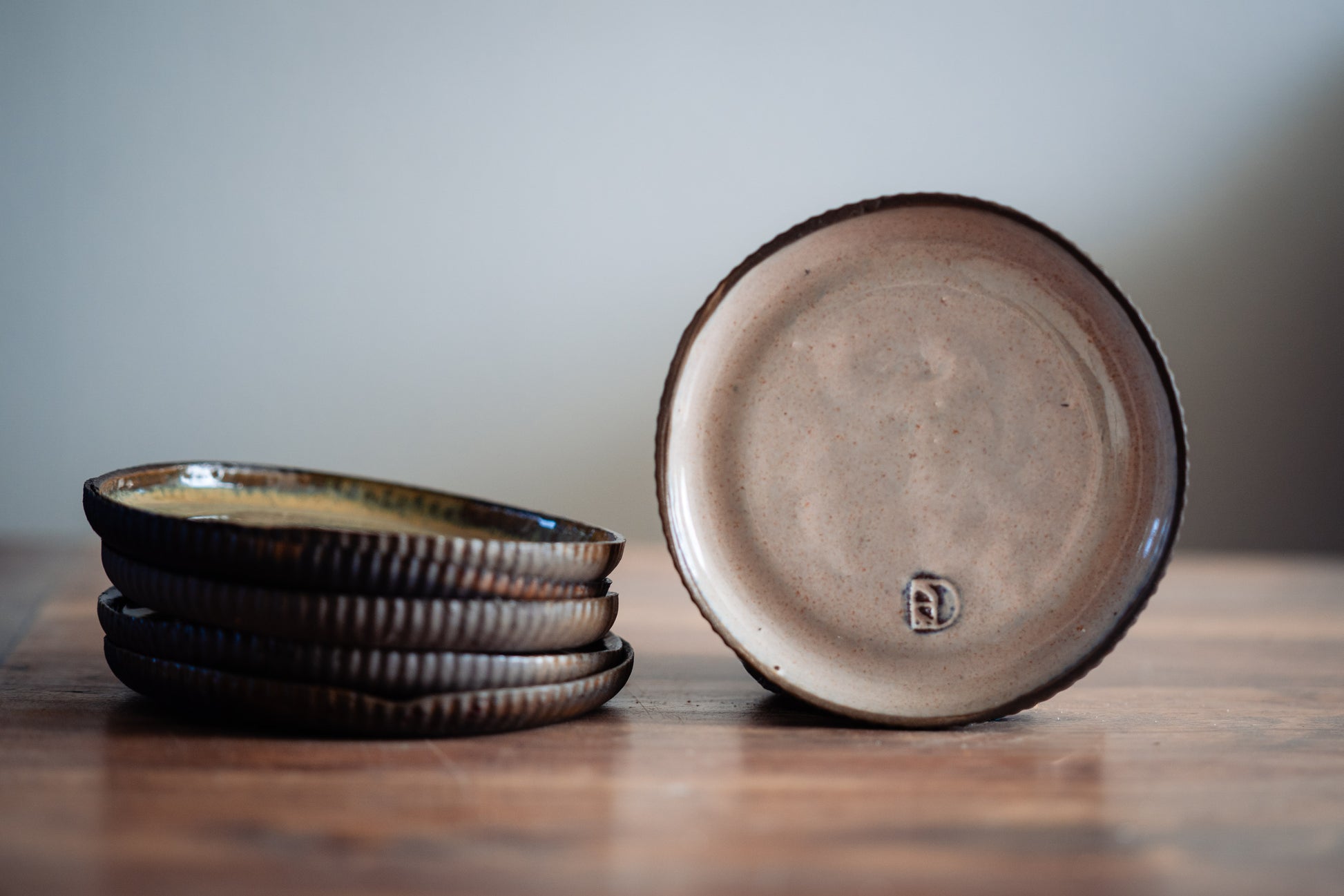 Zacht roze glazuur op donkere klei.